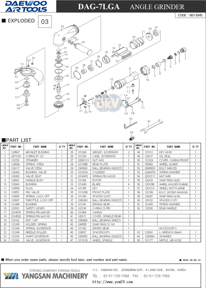 - Máy mài góc khí nén Daewoo DAG-7LGA được sản xuất bởi nhà sản xuất Yangsan Machinery - Busan - Hàn Quốc. Made in Korea (CO Phòng thương mại Hàn Quốc).