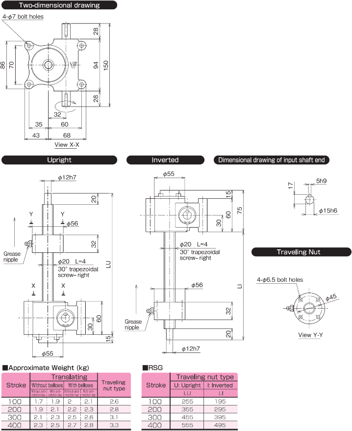 - Kích ren Nippon RSG (Nippon screw jack RSG) có sức nâng max: 5 kN (0.5 tấn), với hành trình dài tùy chọn theo nhu cầu của khách hàng.