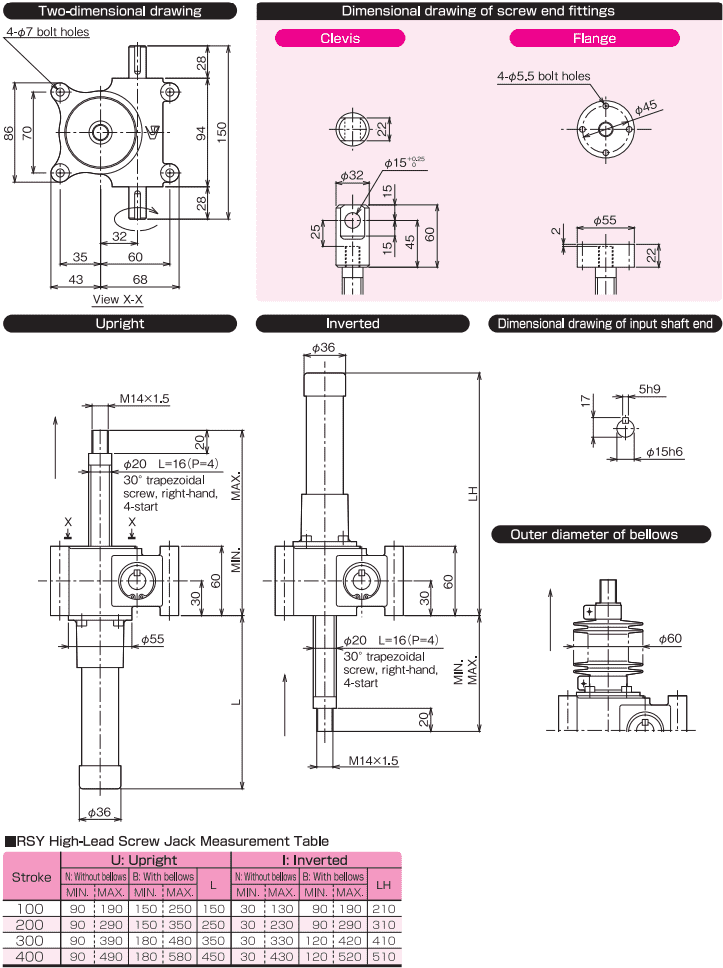- Kích ren Nippon RSY (Nippon screw jack RSY) có sức nâng max: 5 kN (0.5 tấn), với hành trình dài tùy chọn theo nhu cầu của khách hàng.