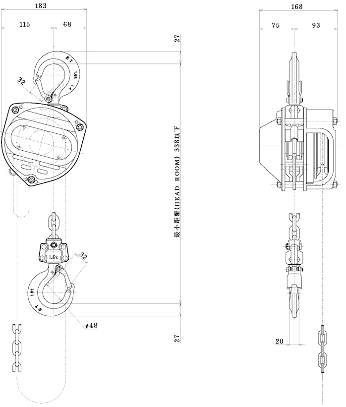 - Pa lăng xích kéo tay Elephant H-1.6 trang bị 1 đường dây xích tải, xích tải được chế tạo từ thép hợp kim, đường kính đốt xích tải Ø 7.1 mm, chế tạo theo tiêu chuẩn ISO3077-1984 chất lượng độ chính xác cao, đảm bảo khả năng chịu tải lớn. Ngoài chiều cao nâng tiêu chuẩn 2.5 m, có thể chọn lựa xích tải có hành trình nâng cao hơn để phù hợp với nhu cầu của khách hàng (Option).