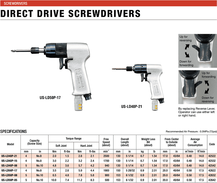 - Súng siết vít Uryu US-LD50P-17, Súng siết vít khí nén Uryu US-LD50P-17, Uryu pneumatic tools US-LD50P-17: là loại súng siết vít, cài đặt được lực siết, khí nén, có lực siết max: 3.5 - 5.9 N.m , cỡ vít: 1/4", chuyên dùng để siết, vặn các loại vít trong công nghiệp.