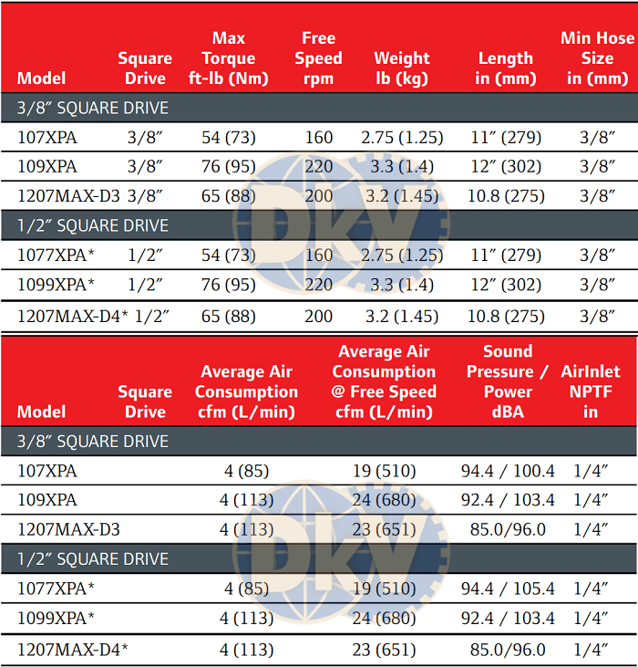 - Súng siết bulong khí nén Ingersoll Rand 1099XPA có tốc độ không tải: 220 rpm. Có chiều dài tổng thể: 302 mm , trọng lượng: 1.4 kg.