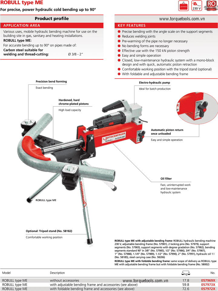 MÁY UỐN ỐNG THỦY LỰC ROTHENBERGER 057972X | ROTHENBERGER HYDRAULIC PIPE BENDER 057972X | 15 tấn | Ø 3/8" - 2"