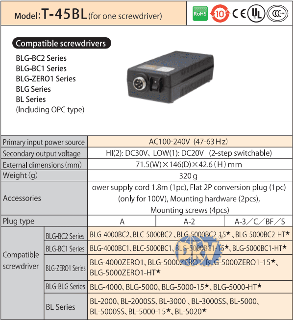 BỘ ĐIỀU KHIỂN HIOS T-45BL | HIOS DC COMPATIBLE SCREWDRIVERS T-45BL | 100-240V
