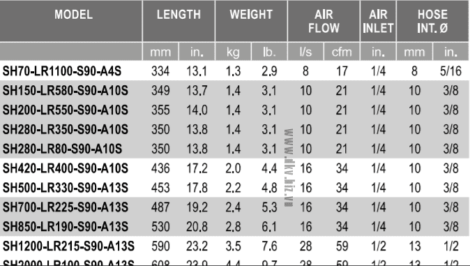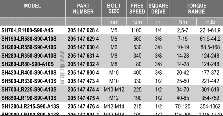 - Súng siết lực khí nén Desoutter SH150-LR580-S90-A10S, Desoutter pneumatic nutrunners SH150-LR580-S90-A10S: có dải lực siết 7 - 15 N.m, cỡ khẩu 3/8", chuyên dùng để siết bulong, đai ốc có lực chính xác trong công nghiệp.