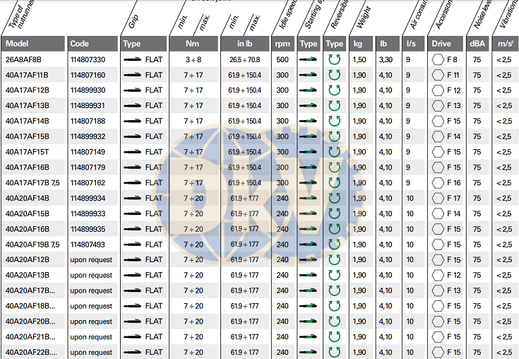 - Súng siết lực Fiam 26A8AF8B , Fiam Air screwdrivers with torque control 26A8AF8B : có lực siết: 3 - 8 N.m,độ rung: < 2.5, tốc độ không tải: 500 vòng/phút, chuyên dùng để siết lực chính xác các loại bulong tiêu chuẩn F 8 trong công nghiệp.