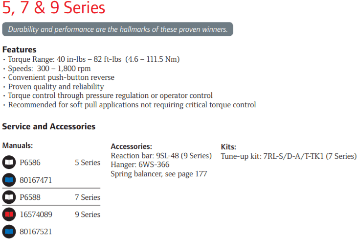 - Súng siết lực khí nén Ingersoll Rand 5RLK2D6 là loại súng vuông góc, tốc độ không tải đạt 1800 rpm (vòng/phút). Chiều dài tổng thể 257.3 mm. Trọng lượng: 1.2 kg.