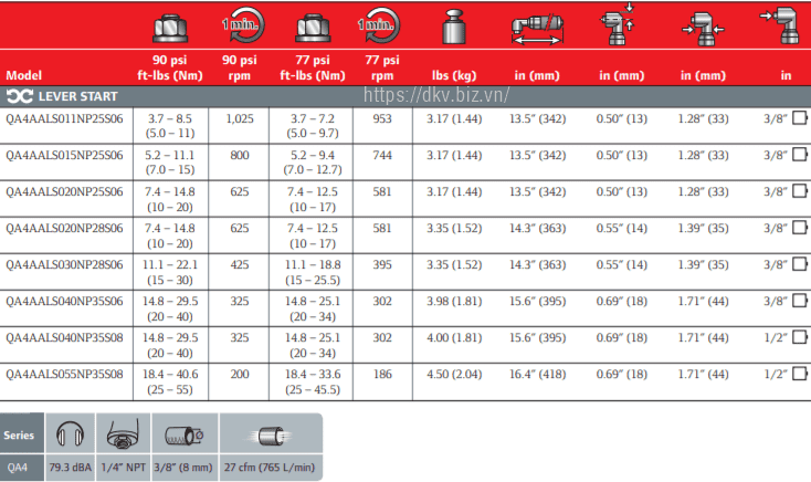 - Súng siết lực khí nén Ingersoll Rand QA4AALS011NP25S06 là loại súng vuông góc, tốc độ không tải đạt 1025 rpm (vòng/phút). Chiều dài tổng thể 342 mm. Trọng lượng: 1.44 kg.