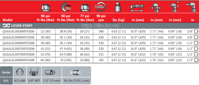 - Súng siết lực khí nén Ingersoll Rand QA6AALD040NP35S06 được sản xuất, chế tạo tại nhà máy Ingersoll Rand/USA. Made in USA