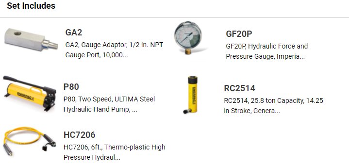 Bộ kích thủy lực Enerpac SCR2514H, Enerpac hydraulic cylinder and hand pump set SCR2514H: là sự kết hợp giữa kích thủy lực Enerpac RC-2514 với bơm tay thủy lực Enerpac P-80, thông qua các phụ kiện: áp kế, ống dây, coupler, đáp ứng những yêu cầu thông thường của một bộ kích thủy lực đầy đủ hoạt động tốt.