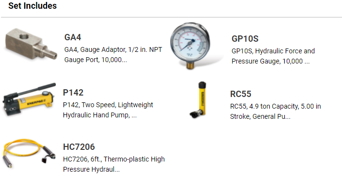Bộ kích thủy lực Enerpac SCR55H, Enerpac hydraulic cylinder and hand pump set SCR55H: là sự kết hợp giữa kích thủy lực Enerpac RC-55 với bơm tay thủy lực Enerpac P-142, thông qua các phụ kiện: áp kế, ống dây, coupler, đáp ứng những yêu cầu thông thường của một bộ kích thủy lực đầy đủ hoạt động tốt.