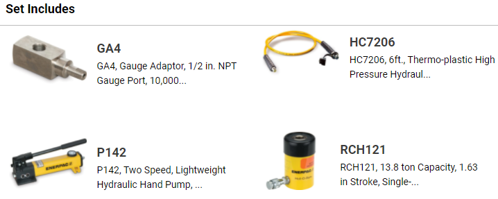 Bộ kích thủy lực rỗng tâm Enerpac SCH121H, Enerpac hollow hydraulic cylinder and hand pump set SCH121H: là sự kết hợp giữa kích thủy lực rỗng tâm Enerpac RCH-121 với bơm tay thủy lực Enerpac P-142, thông qua các phụ kiện: áp kế, ống dây, coupler, đáp ứng những yêu cầu thông thường của một bộ kích thủy lực đầy đủ hoạt động tốt.