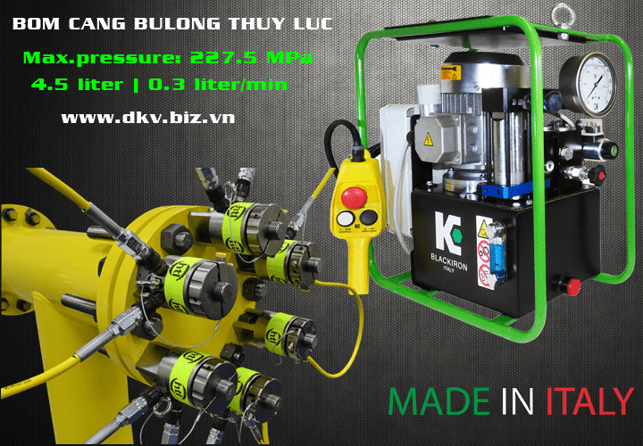 - Bơm căng bulong thủy lực Blackiron BI-HE230V-2275 được sản xuất, chế tạo bởi Blackiron | Italy. Made in Itay (CO Phòng thương mại Italy). DKV VIET NAM nhập khẩu trực tiếp, phân phối và service tại Việt nam.
