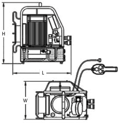 - Đầu ra coupler tiêu chuẩn: 1/4"- BSP, cho phép kết nối nhanh kiểu cắm rút với ống dây thủy lực. Trang bị điều khiển cầm tay thao tác điều khiển 2 nút bấm (up/down) tương ứng với nâng/hạ (đẩy áp - đẩy dầu/xả áp - hồi dầu). Có độ ồn 82db(A).