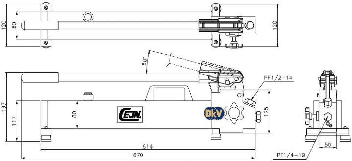 - Bơm tay thủy lực Cejn 19 959 1812, bơm tay thủy lực cao áp Cejn 19 959 1812, Cejn high pressure hydraulic pump 19 959 1812: là loại bơm tay thủy lực cao áp 1 chiều, thân vỏ thép, có dung tích chứa dầu 2 lít, áp hoạt động < 1.800 bar (180 MPa), chuyên dùng cho kích và tools thủy lực cao áp 1 chiều.