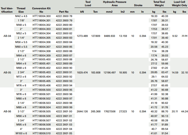 - Căng bulong thủy lực Atlas Copco HTT.18003.310 , Atlas Copco hydraulic bolt tensioner HTT.18003.310 chuyên dùng để siết bulong cường độ cao M52, với lực siết max: 810.849 kN, hành trình max: 10 mm, áp hoạt động < 1.500 bar (150 MPa).