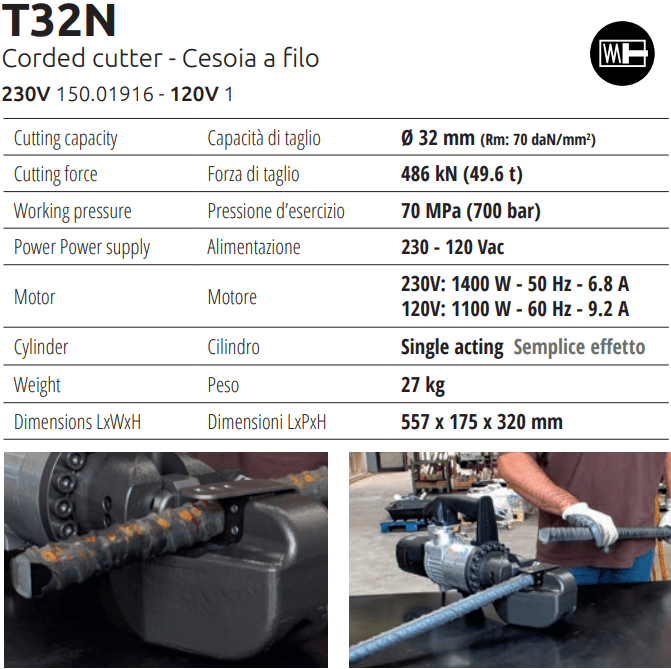 MÁY CẮT THÉP THỦY LỰC EDILGRAPPA 150.01916 | EDILGRAPPA ELECTRIC HYDRAULIC REBAR CUTTER 150.01916 | 49.6 tấn | Ø 32 mm