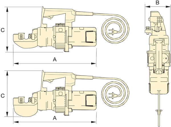 - Máy cắt thép thủy lực Enerpac EBE26E có kích thước: 468 x 140 x 257 mm, trọng lượng: 15.9 kg.