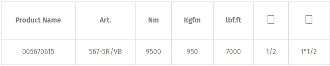 - Cỡ khẩu đầu vào Beta 567-5R/VB: 1/2", cỡ khẩu đầu ra: 1"1/2". Hệ số nhân: 135:1. Lực siết đầu vào max: 70 N.m.