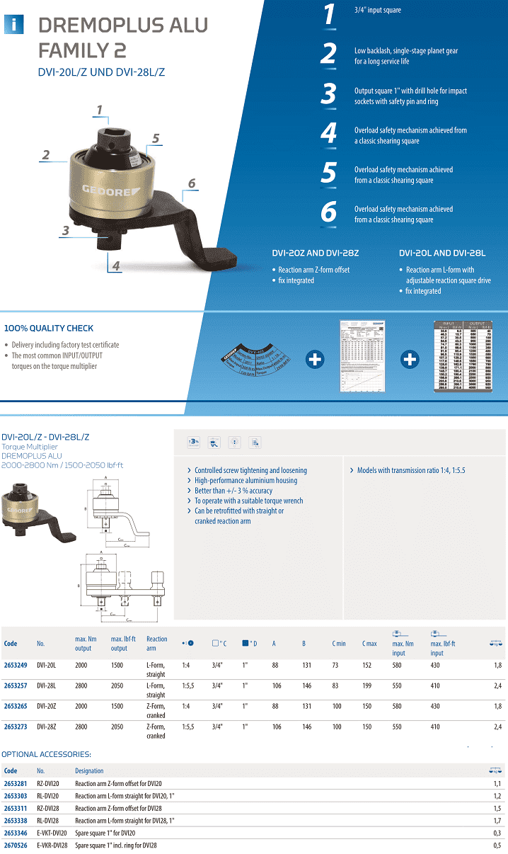 - Cờ lê nhân lực Gedore DVI-28Z được sản xuất chế tạo & sản xuất bởi Gedore Torque Solutions GmbH, 1 phân nhánh thiết bị siết lực hạng nặng của Tập đoàn Gedore/Germany (mua lại Losomat).. Được DKV VIET NAM CO.,LTD nhập khẩu trực tiếp. Made in Germany.