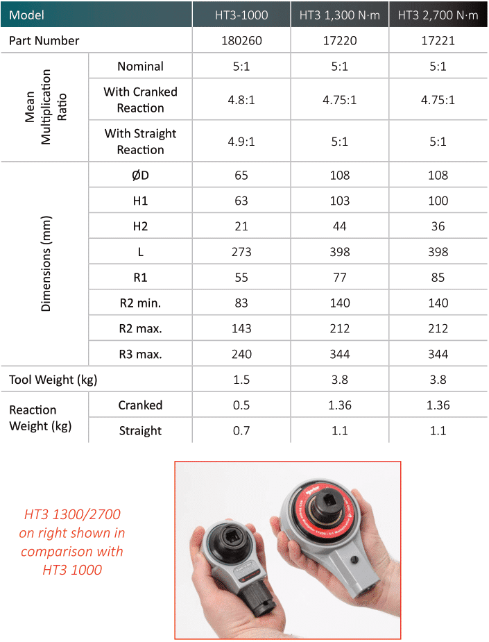 - Bản chất của cờ lê nhân lực Norbar HT3-1000 là một cơ cấu kiểu hộp giảm tốc, liên kết với nhau qua nhiều bánh răng với một tỷ số truyền nhất định, tùy từng hãng tính toán mà cho ra một hệ số nhân lực, ở đây Norbar là 4.8:1 - 4.9: 1.