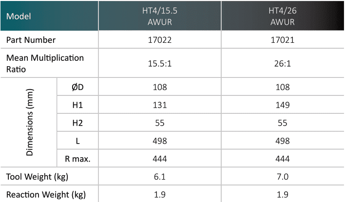- Thân cờ lê nhân lực Norbar HT4 15.5:1, 3000 N·m cùng càng phản lực được chế tạo bằng thép cường lực có độ dai va đập cao, chịu lực vặn xoắn tốt. Trọng lượng của cờ lê nhân lực Norbar HT4 15.5:1, 3000 N·m (đầu nhân lực: 6.1 kg, càng phản lực thanh dài: 1.9 kg). Đường kính thân D = 108 mm.