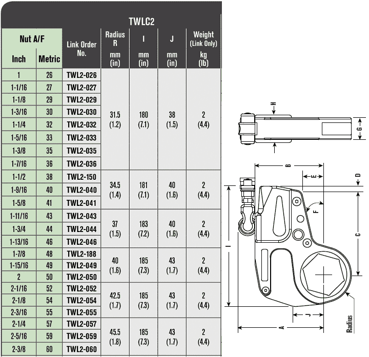 TRÒNG CỜ LÊ THỦY LỰC POWER TEAM TWL2-026 | POWER TEAM HEXAGON RATCHET LINK TWL2-026 | TWLC2 | 26 mm