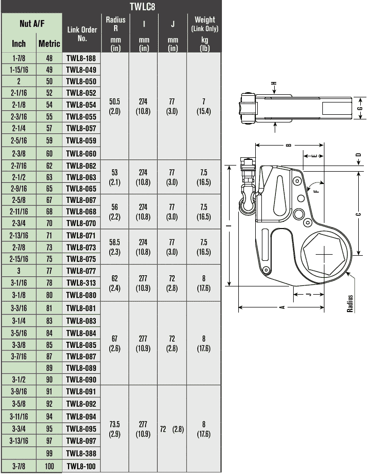 TRÒNG CỜ LÊ THỦY LỰC POWER TEAM TWL8-188 | POWER TEAM HEXAGON RATCHET LINK TWL8-188 | TWLC8 | 48 mm