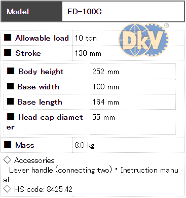 - Kích thủy lực Eagle ED-100C được sản xuất bởi Konno Corporation - Japan. Made in Japan (CO Phòng thương mại Osaka | Japan). DKV VIET NAM CO.,LTD nhập khẩu từ Nhật Bản và phân phối service tại Việt nam.