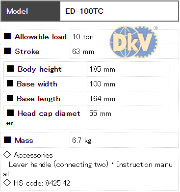 - Kích thủy lực Eagle ED-100TC được sản xuất bởi Konno Corporation - Japan. Made in Japan (CO Phòng thương mại Osaka | Japan). DKV VIET NAM CO.,LTD nhập khẩu từ Nhật Bản và phân phối service tại Việt nam.