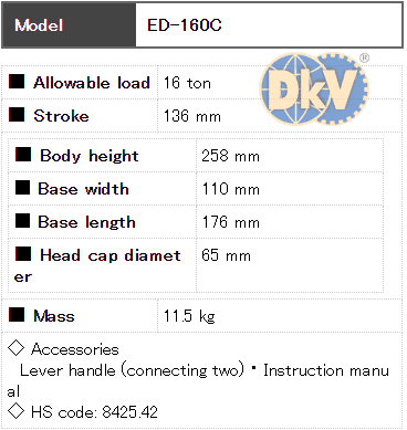 - Kích thủy lực Eagle ED-160C được sản xuất bởi Konno Corporation - Japan. Made in Japan (CO Phòng thương mại Osaka | Japan). DKV VIET NAM CO.,LTD nhập khẩu từ Nhật Bản và phân phối service tại Việt nam.