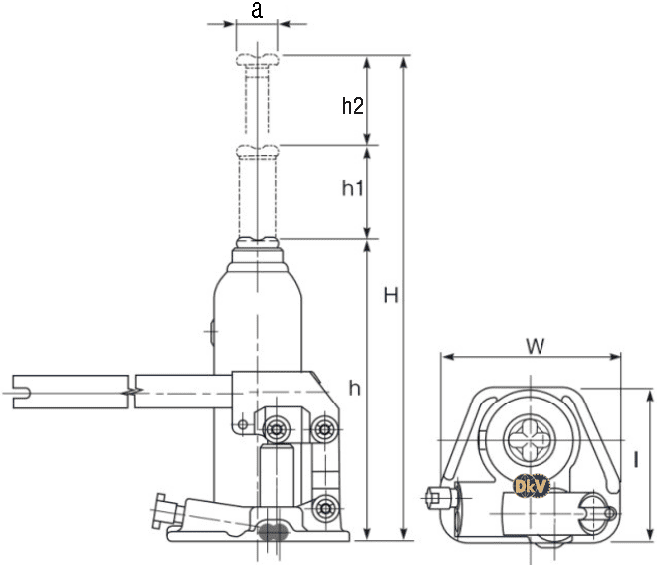 - Kích thủy lực Masada HF-7R-V có tiết diện khối đế (l x w): 137 x 130 mm, tiết diên đỉnh kích chịu tải (a): 38x40 mm, sử dụng tay công 2 đoạn (Ø 21.7 mm x dài 500 mm) để tạo lực đẩy bơm thủy lực 1 cấp tốc độ. Trọng lượng: 6.2 kg.