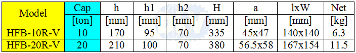 - Con đội thủy lực Masada HFB-10R-V, kích thủy lực Masada HFB-10R-V, Masada hydraulic bottle jack HFB-10R-V: là loại con đội thủy lực lắc tay, có sức nâng max: 10 tấn, hành trình max (h1): 95 mm, chiều cao tĩnh khi chưa nâng (h): 170 mm, chiều cao kéo dài vặn ren (h2): 70 mm, chiều cao tối đa khi lên hết hành trình, kể cả nới trục ren (H): 335 mm, do Masada | Japan sản xuất.