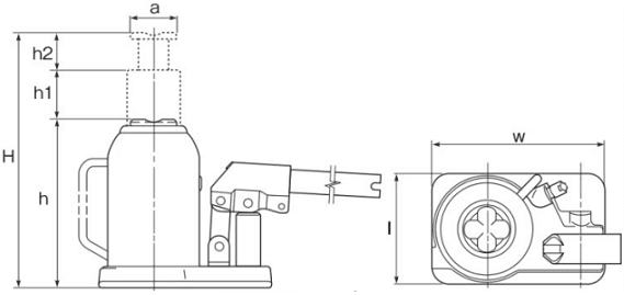 - Kích thủy lực Masada MHB-30Y có tiết diện khối đế (l x w): 142 x 192 mm, tiết diên đỉnh kích chịu tải (a): Ø61 mm, dung tích dầu 380 cc, sử dụng tay công 3 đoạn (Ø 27.2 mm x dài 800 mm) để tạo lực đẩy bơm thủy lực 1 cấp tốc độ, với lực đẩy tay max: 353 N. Trọng lượng: 13.7 kg.