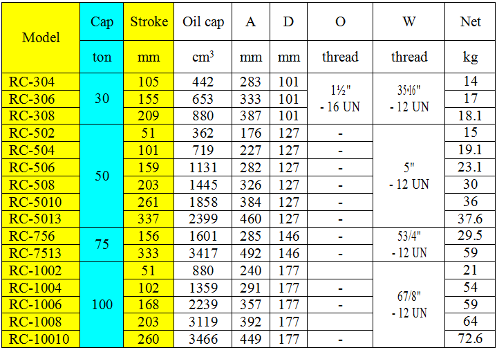 KÍCH THỦY LỰC RC-506 | CON ĐỘI THỦY LỰC RC-506 | SINGLE ACTING HYDRAULIC JACK RC-506 | 50 tấn | 159 mm