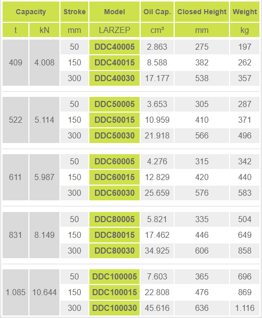 - Kích thủy lực Larzep DDC60005, con đội thủy lực 2 chiều Larzep DDC60005, Larzep double acting hydraulic jack DDC60005 là loại kích thủy lực, con đội thủy lực 2 chiều , thân vỏ thép, có sức nâng max: 611 tấn, hành trình max: 50 mm chuyên dùng để nâng hạ trong công nghiệp.