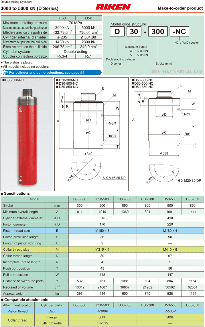 - Kích thủy lực 2 chiều Riken D30-500 có trọng lượng: 494 kg, được sản xuất tại nhà máy RIKEN KIKI đặt tại Tokyo, Nhật Bản. Made in Japan (CO Phòng thương mại Osaka | Japan). DKV VIET NAM CO.,LTD nhập khẩu trực tiếp từ Nhật Bản và phân phối service.