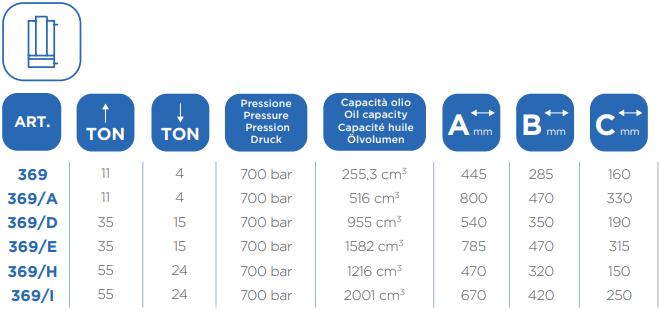 KÍCH THỦY LỰC OMCN 369/A | KÍCH THỦY LỰC 2 CHIỀU OMCN 369/A | OMCN DOUBLE ACTING HYDRAULIC JACK 369/A | 11 tấn | 330 mm