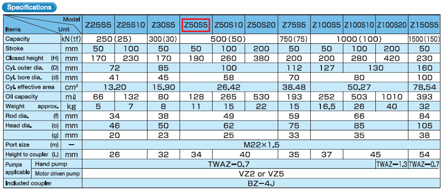 KÍCH THỦY LỰC OSAKA Z50S5 | CON ĐỘI THỦY LỰC OSAKA Z50S5 | OSAKA HYDRAULIC JACK Z50S5 | 50 tấn | 50 mm