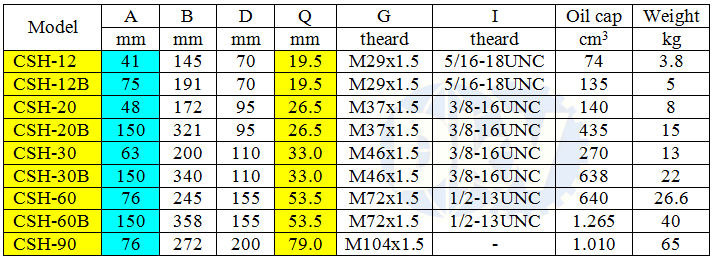 - Kích thủy lực rỗng tâm Mega CSH-12 thuộc loại kích thủy lực thân vỏ thép, kích thủy lực trơn trang bị ren trong phía đầu kích G = M29x1.5, và các bulong chìm dưới đáy kích I = 5/16-18UNC, linh hoạt kết nối với đồ gá khi cần thiết.