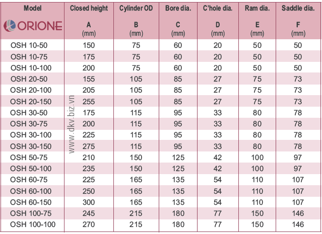 - Ngoài kích thủy lực rỗng tâm Orione OSH 10-50 và các sản phẩm tiêu chuẩn luôn có sẵn, chúng tôi còn có sẵn các kích tiêu chuẩn chất lượng cao hơn của Japan, Korea, China để thỏa mãn sự lựa chọn thêm của khách hàng, phù hợp với tiêu chí của khách hàng đặt ra (tham khảo tại: www.osaka-jack.com.vn và www.dkv-hydraulic.com).