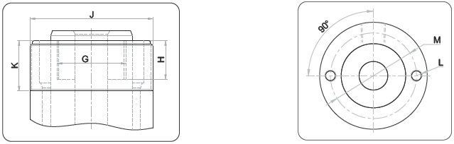 - Kích thủy lực rỗng tâm Orione OSH 10-50 trang bị ren phía đầu kích (J = M75x2P và G = M42x2P) cùng 2 bulong chìm dưới đáy kích (L = M8x15) thuận tiện kết nối với đồ gá khi cần thiết.