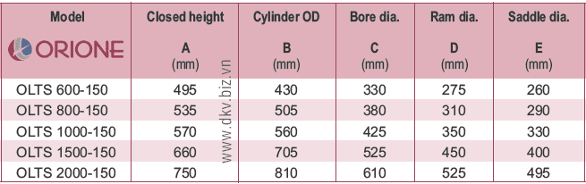 • Kích thủy lực Orione OLTS 600-150 không trang bị lò xo hồi, việc hồi kích nhờ đè nén thủ công hoặc tự trọng của xilanh.