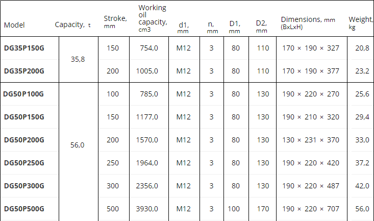 - Kích thủy lực vòng hãm Enerpred DG35P200G có đường kính xilanh (D1 = 80 mm), phần đáy kích trang bị bulong chìm ( số lượng n = 3 chiếc, ren bulong d1 = M12) thuận tiện khi kết nối với đồ gá khi cần.