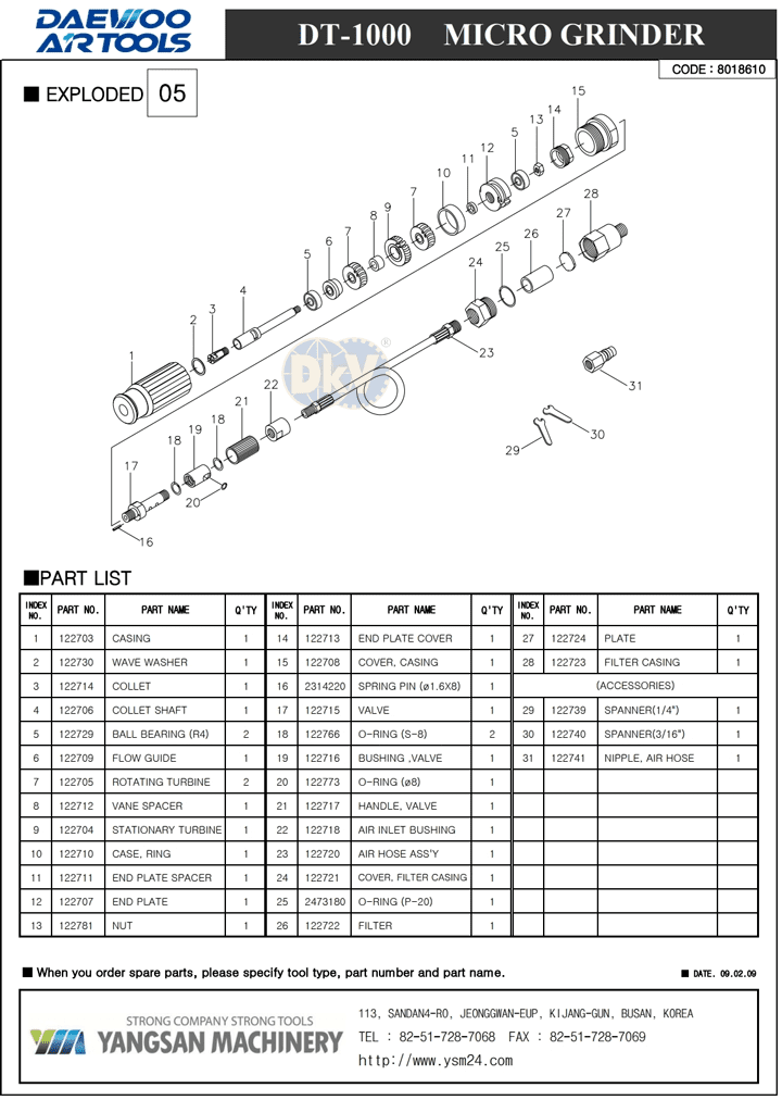 - Máy mài khí nén Daewoo DT-1000 được sản xuất bởi nhà sản xuất Yangsan Machinery - Busan - Hàn Quốc. Made in Korea (CO Phòng thương mại Hàn Quốc).