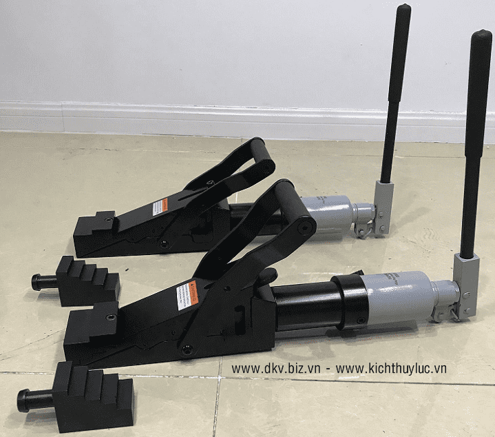 - Nêm thủy lực LW-18, hydraulic lifting wedge LW-18: có lực nâng: 18 tấn (157 kN). Khe hở nhỏ nhất (ban đầu): 10 mm, khe hở mở tối đa: 30.5 mm, hành trình của nêm max: 21 mm. Dùng để tạo khe hở ban đầu trong quá trình nâng hạ (tạo khe để nhét kích thủy lực mỏng).