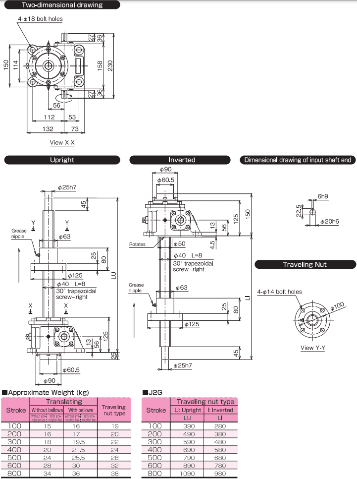 - Kích ren Nippon J2G (Nippon screw jack J2G) có sức nâng max: 50 kN (5 tấn), với hành trình dài tùy chọn theo nhu cầu của khách hàng.