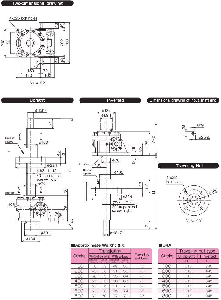 - Kích ren Nippon J4A (Nippon screw jack J4A) có sức nâng max: 200 kN (20 tấn), với hành trình dài tùy chọn theo nhu cầu của khách hàng.