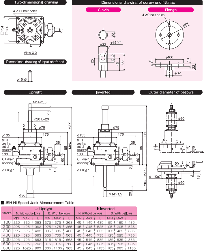 - Kích ren Nippon JSH (Nippon screw jack JSH) có sức nâng max: 5 kN (0.5 tấn), với hành trình dài tùy chọn theo nhu cầu của khách hàng.