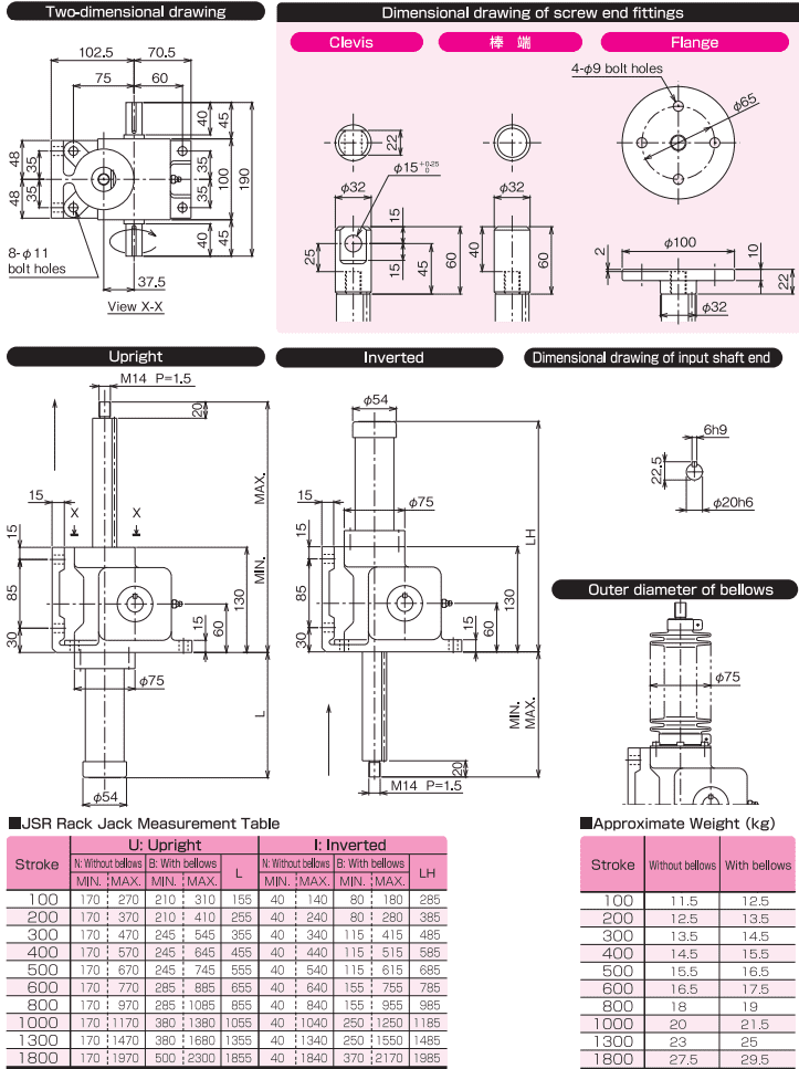 - Kích ren Nippon JSR (Nippon screw jack JSR) có sức nâng max: 4 kN (0.4 tấn), với hành trình dài tùy chọn theo nhu cầu của khách hàng.